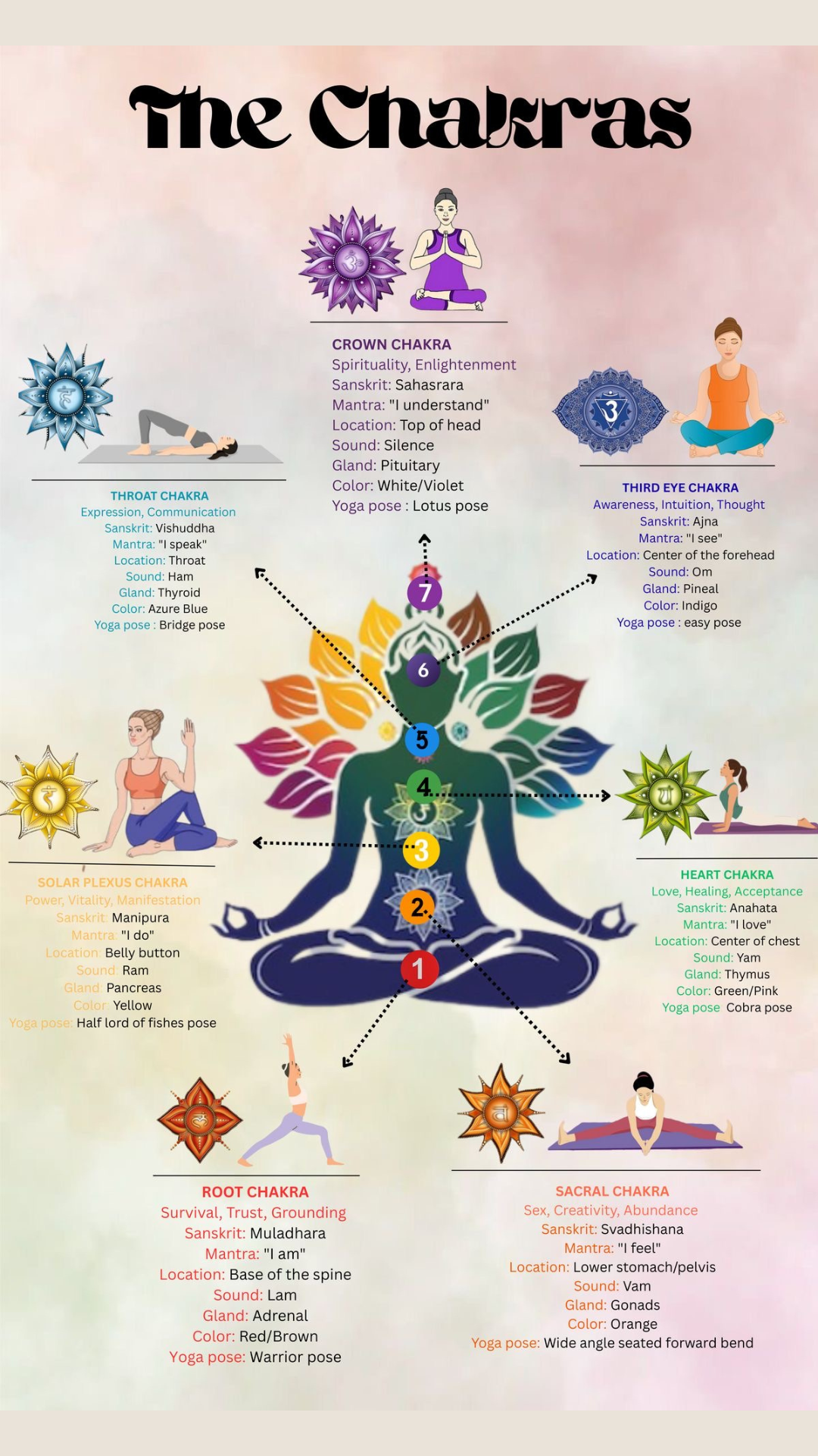 The chakra system is a framework for understanding how energy moves through the body and influences our physical, emotional, and mental well-being. By learning about the chakras, we gain insight into where we may be holding tension or imbalance and how to support greater harmony and flow.